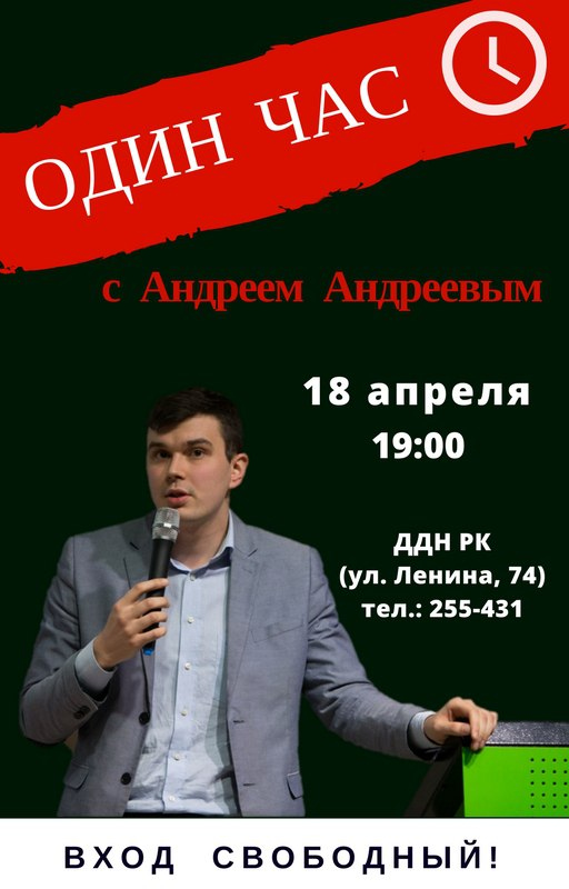 18 апреля в Доме дружбы народов состоится ток-шоу «Один час» с Андреем Андреевым.