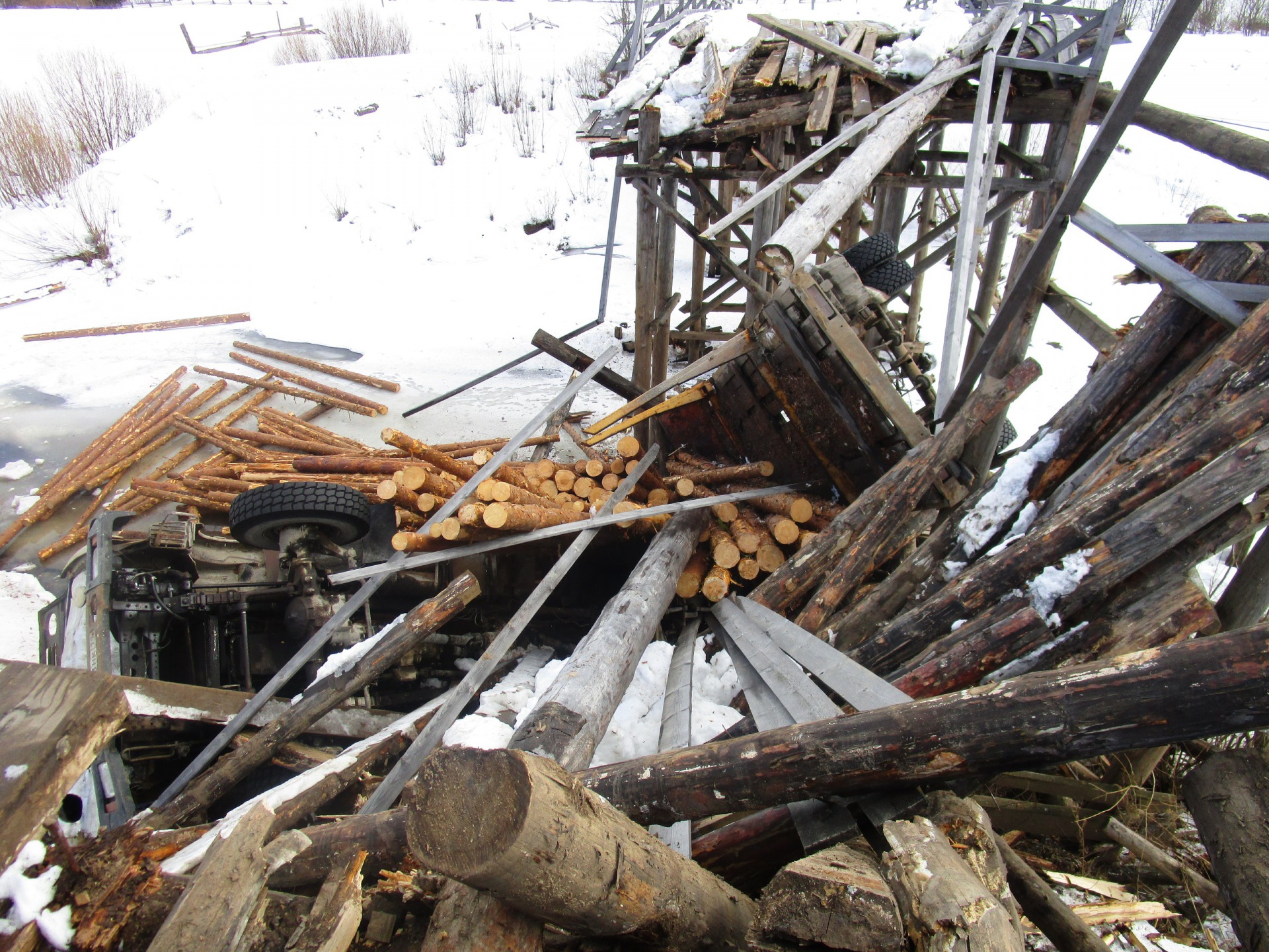 Авария произошла сегодня, 24 марта, в селе Верхолузье Прилузского района. 40-тонный лесовоз проезжал по мосту грузоподъемностью всего в 3,5 тонны, когда тот обрушился. Лесовоз свалился в реку.