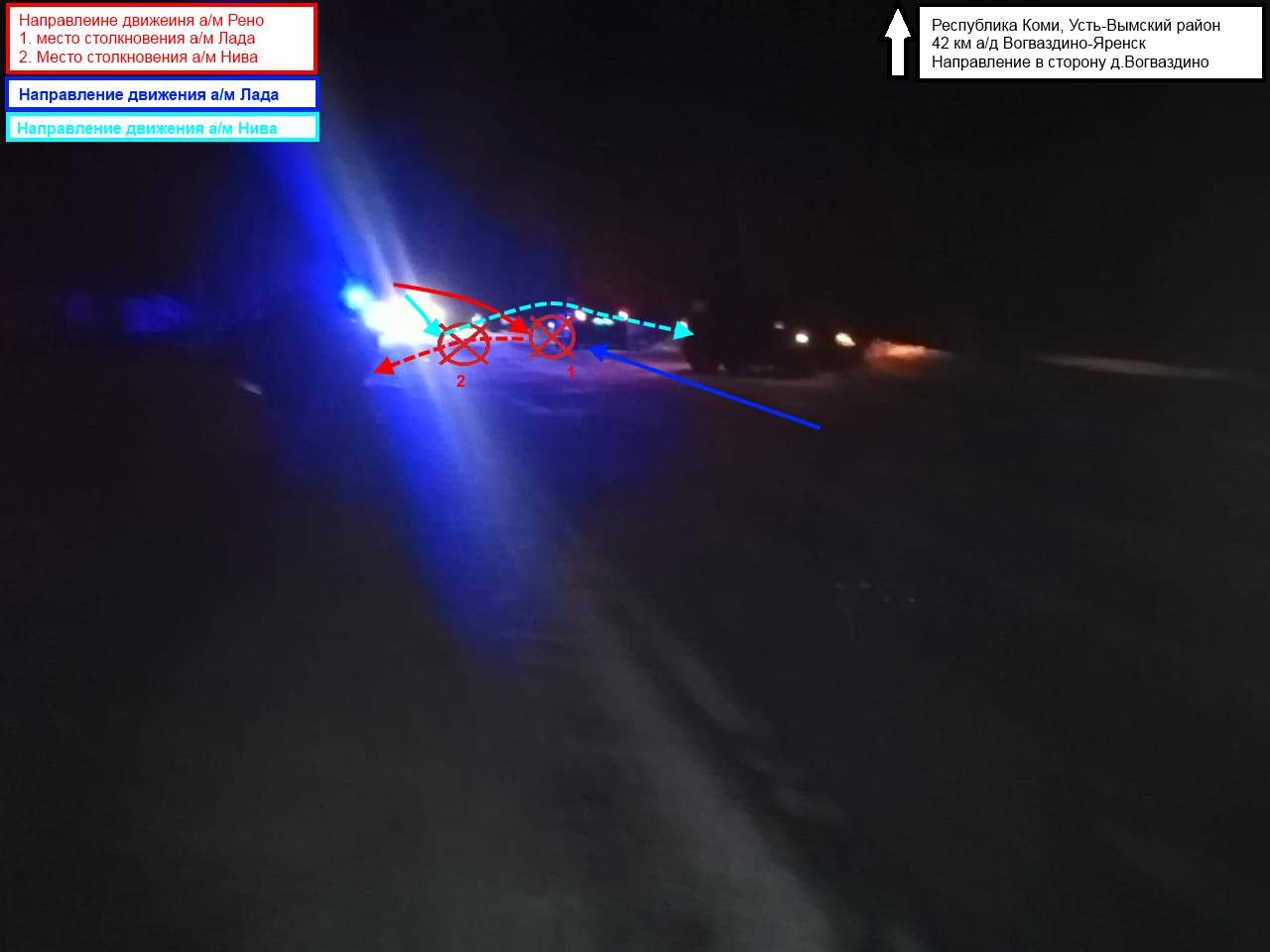 По информации Госавтоинспекции, ДТП случилось в 17:25. Водитель Renault Logan ехал по трассе Вогваздино - Яренск в направлении Яренска. На 42 км трассы мужчина пошел на обгон и выехал на встречную полосу, где столкнулся с Lada Priora под управлением мужчины 1994 года рождения, который двигался во встречном направлении. После этого Logan откинуло на свою полосу, где он столкнулся с Chevrolet Niva, которая двигалась в попутном направлении.