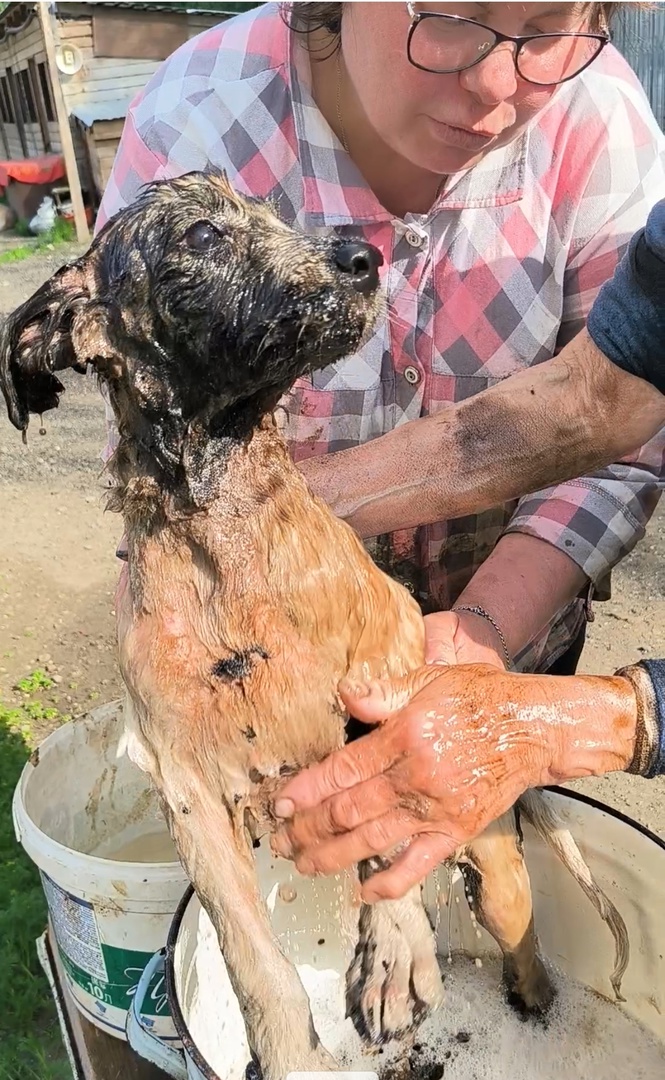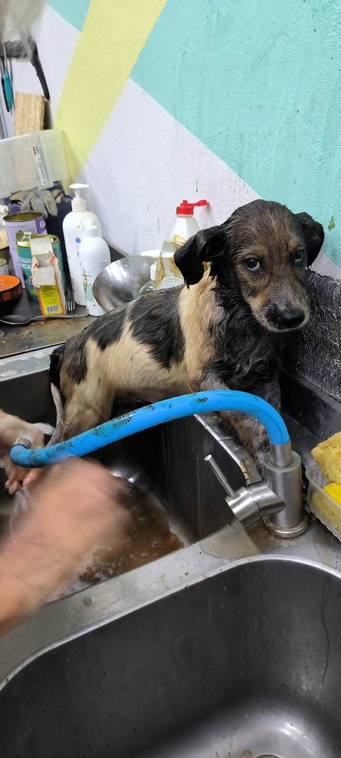 Спасатели, которые нашли щенков, застрявших в луже гудрона, вытащили их и передали в городской приют, где их отмыли и вылечили.