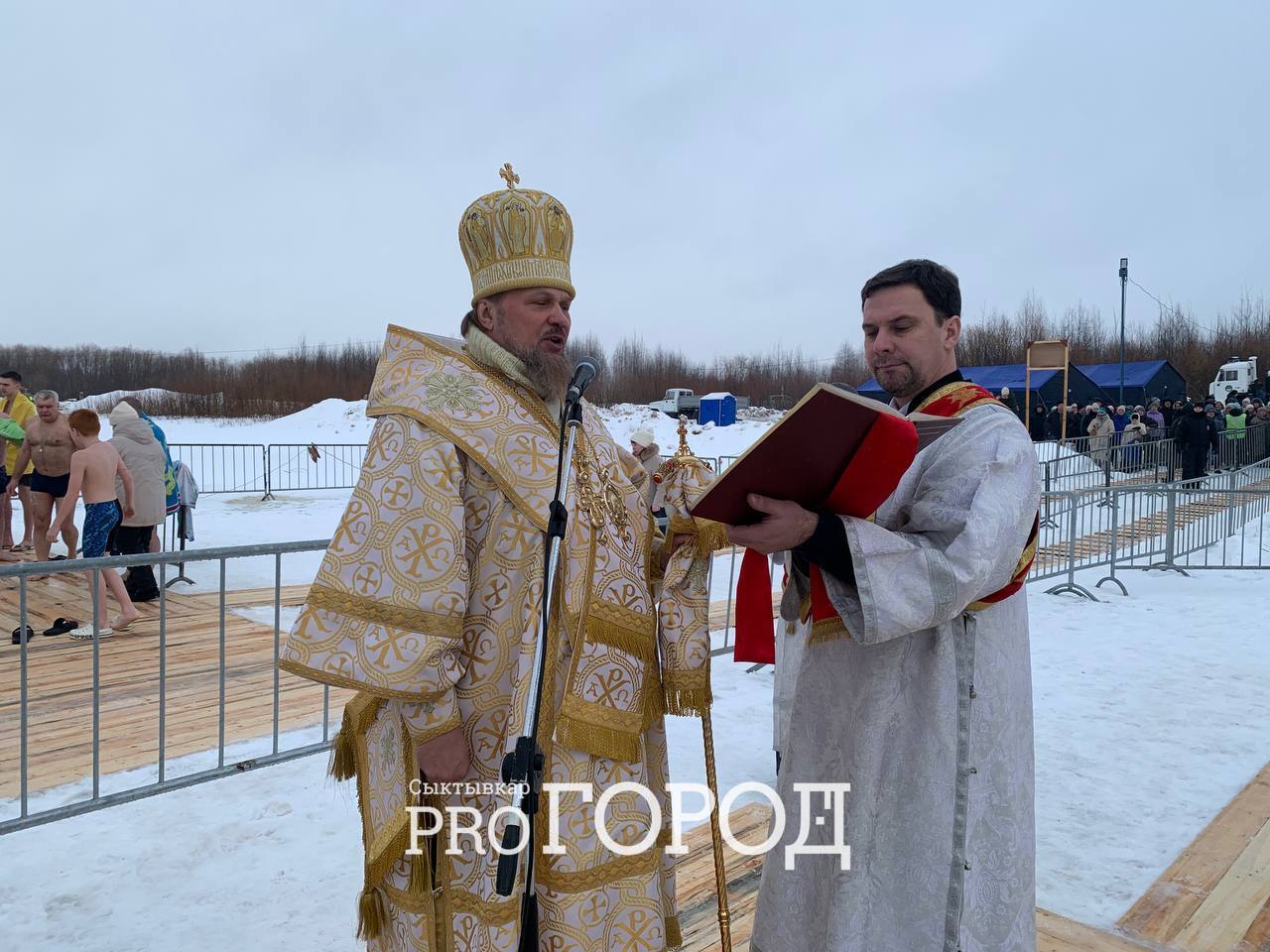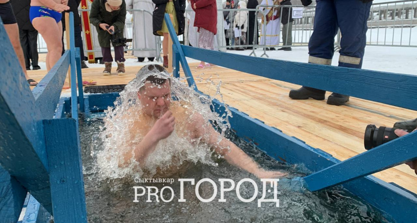 Затем верующие отправились к правому берегу реки Сысола, где их уже ожидали спасатели и подготовленные купели. В одной из них, которая была небольшой и в форме креста, все желающие могли набрать святой воды. В другую люди направлялись искупаться. Несмотря на то, что вода еще не была освящена, сыктывкарцы уже активно ныряли в прорубь.