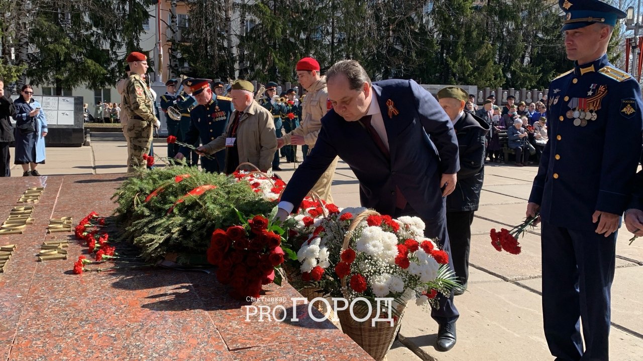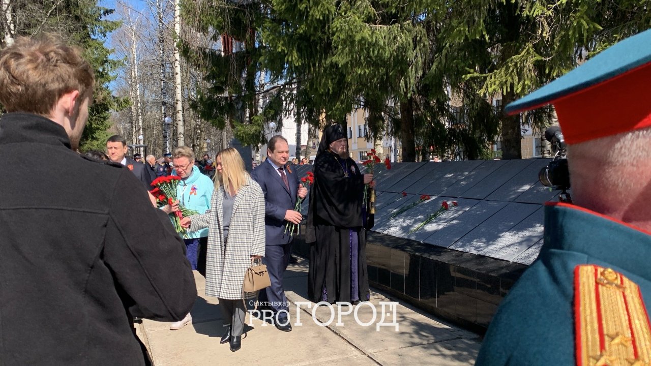 После врио главы Коми обошел весь периметр мемориала и на каждый гранитный список с именами героев ВОВ положил по ветке гвоздики. По обе стороны от монумента сидели ветераны, труженики тыла и дети войны. С ними также пообщался руководитель региона.