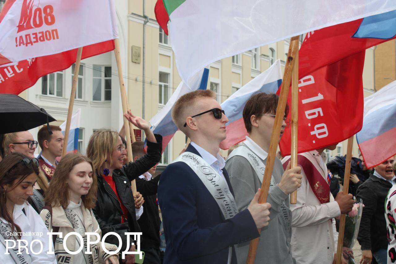 Под дождём, но с мечтами: в Сыктывкаре прошло торжественное шествие выпускников