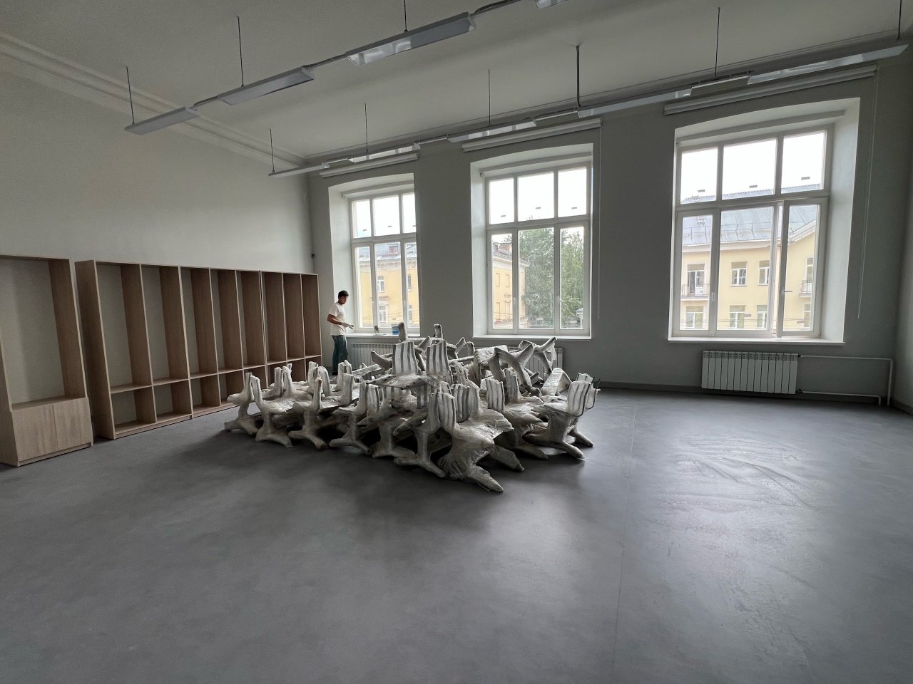 Из того, что уже сделано: установлены новые окна, покрашены стены, а в холле второго этажа на потолке с изысканным элементом декора - «розетками» - прикреплены старинные люстры. Как ранее сообщал «Про Город», они сохранены с начала прошлого века, когда здание было возведено. Впрочем, до наших дней дожили только три из пяти. Еще две люстры в свое время – в 1970-х – были переданы в дар тогдашнему новострю: кинотеатру «Родина», а позже бесследно исчезли.