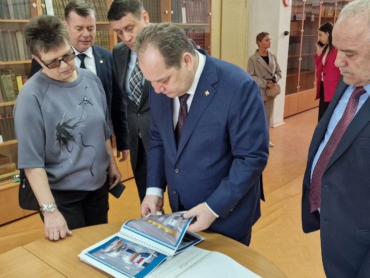 Ростислав Гольдштейн знакомится с планами реконструкции центральной библиотеки Ухты. Фото: Юрий Васильев/ВЗГЛЯД