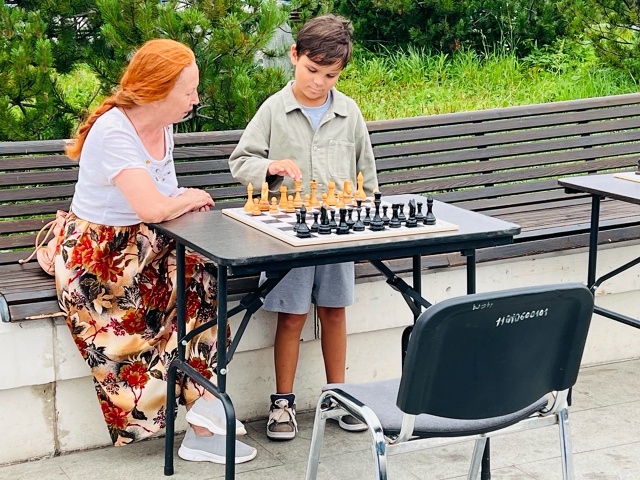 Для любителей мозговой активности установили столы с досками и шахматами. Корреспондент «Про Города» обратила внимание на бабушку, которая терпеливо учила юного внука стратегическому мышлению в этой интеллектуальной игре.