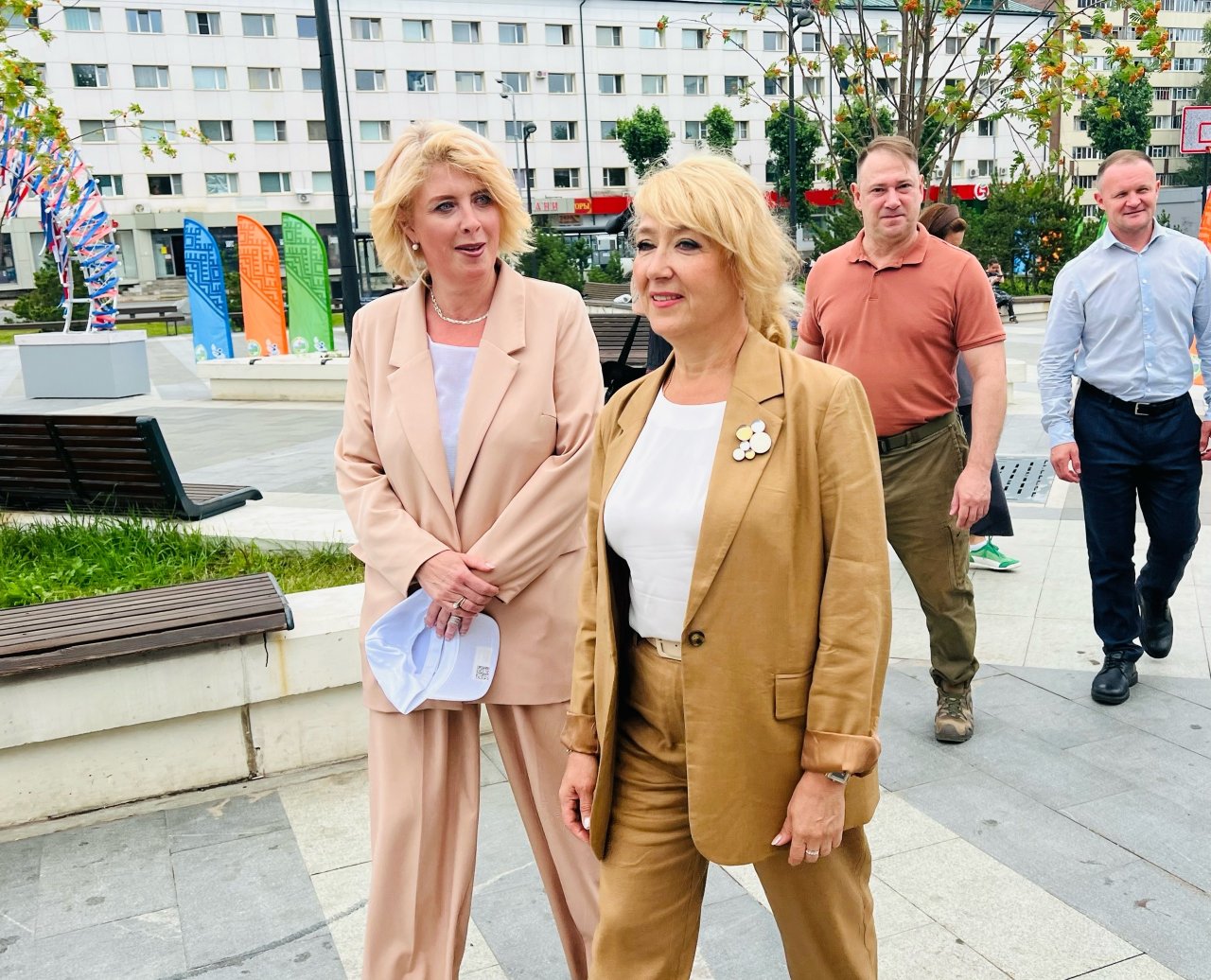 Заместитель руководителя администрации муниципалитета Елена Семейкина и заместитель начальника управления образования Елена Геллерт попытались было и сами принять участие в качестве посетительниц, но им это не удалось в связи с очередью горожан к каждой спортивной локации.