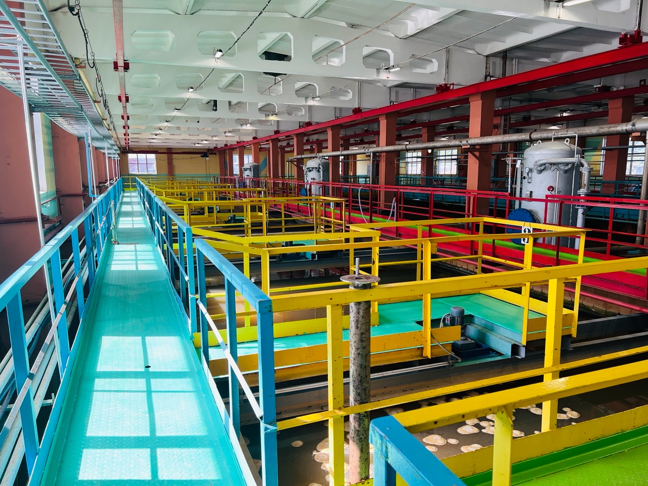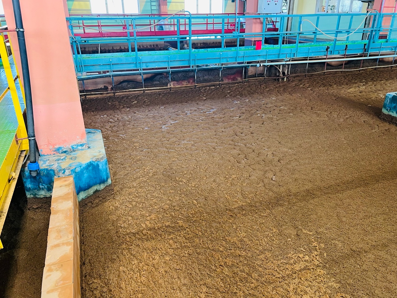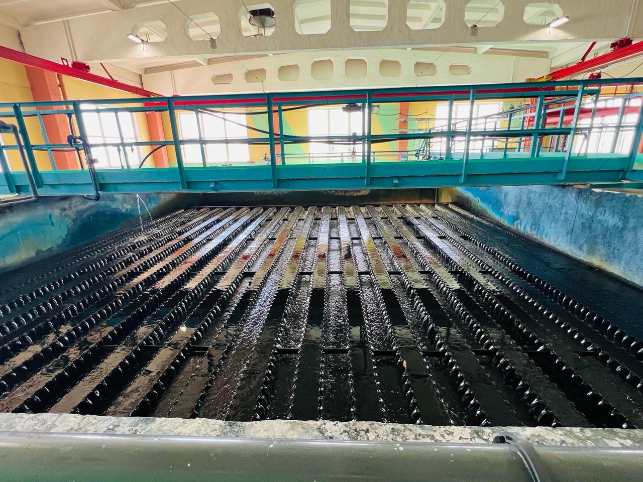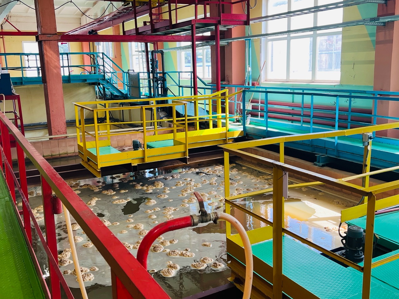 В здании четвертого фильтровального блока расположены большие и глубокие сооружения, куда попадает вода после насосной станции первого подъема. Она кажется и так нормальной. Однако, если пройтись от сооружения к сооружению, видно, как из нее выделяется грязь в виде ржаво-коричневого цвета пены.