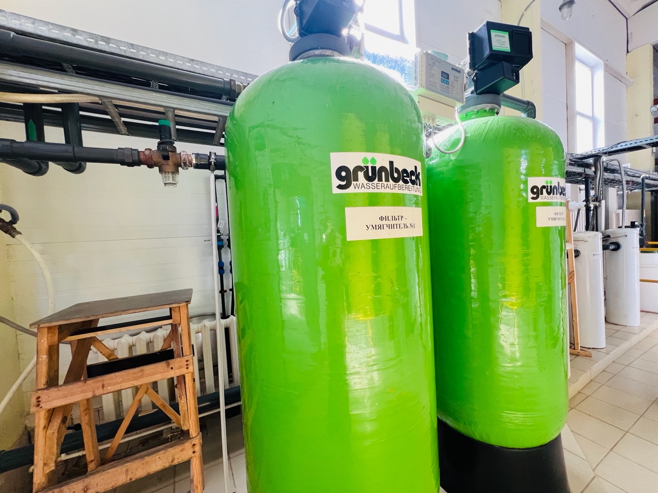 При осмотре здания с комплексом оборудования для производства гипохлорита рия бросается в глаза большой бак с табличкой «промывка Умягчителя». Сам «Умягчитель», загруженный ионообменной смолой, используется для дополнительного умягчения чистой воды перед подачей ее на электролизные ячейки. Любовь