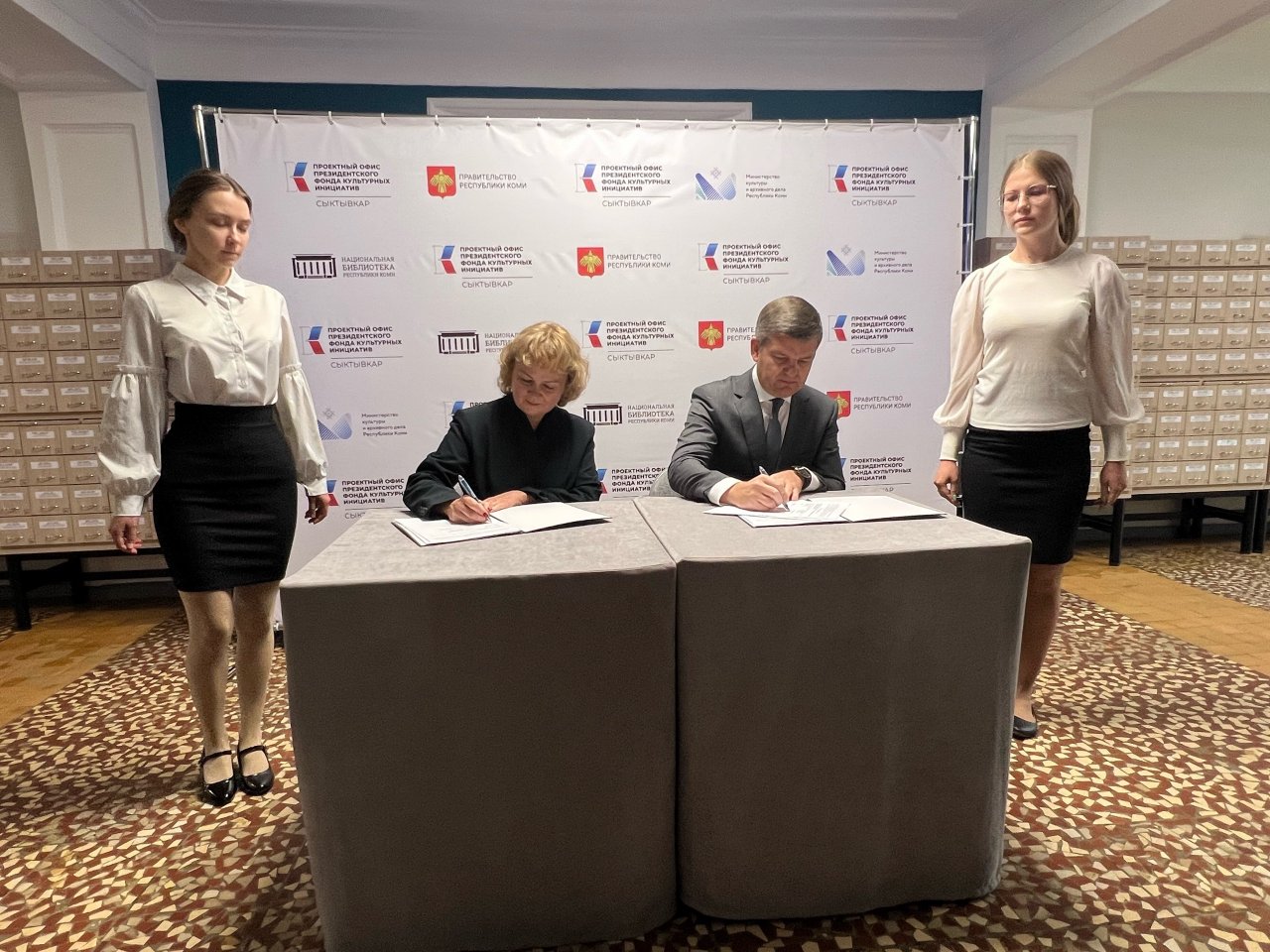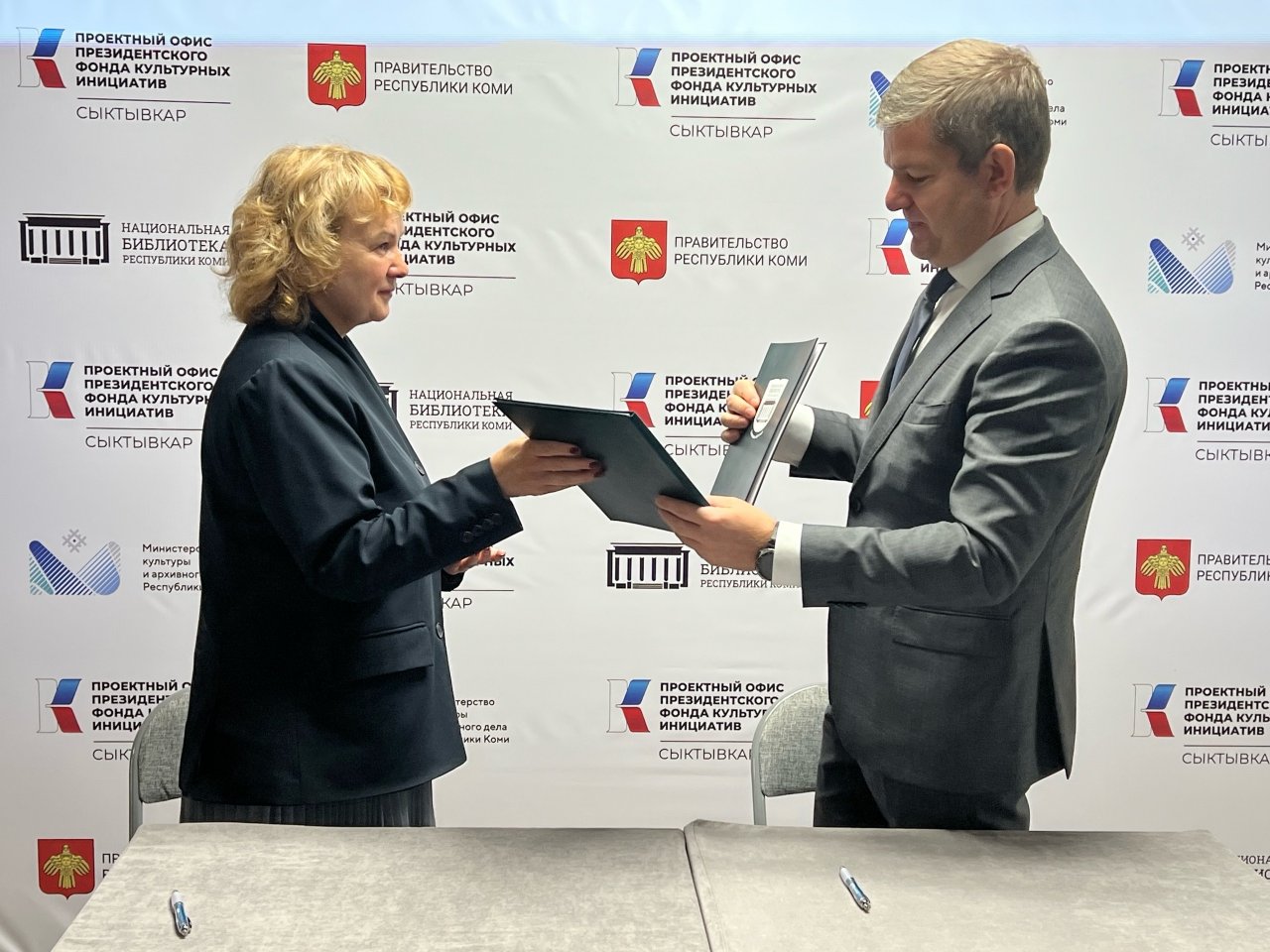 На знаковое событие в Сыктывкар прибыл директор Президентского фонда Роман Карманов. Он подписал соглашение между фондом и Национальной библиотекой Коми.