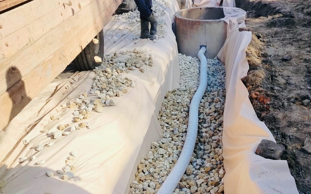 «Основная задача геотекстиля – защита и фильтрация. В слой щебня и трубу не проникает глина и ил, корни растений. Это фильтр тонкой очистки, вода практически без примесей и без сора поступает в дренажную трубу. Правильная дренажная система эффективно удаляет излишнюю влагу и воду от выпавших осадков, отправляя ее подальше от дорог в колодец», - раскрыли нам технологические секреты проведенных работ на предприятии.