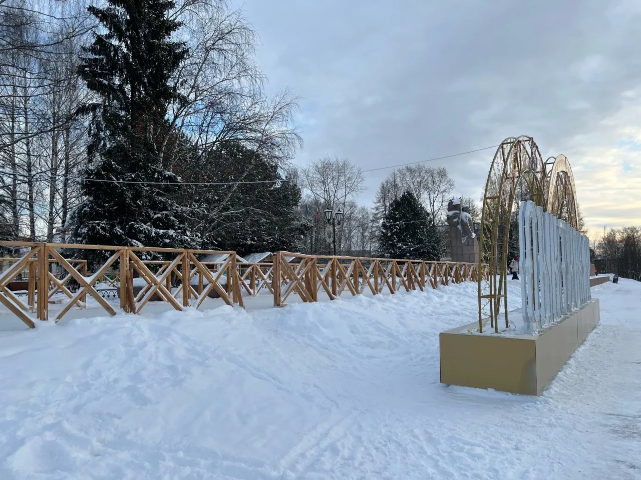 Еще одна хорошая новость: к настоящему времени установлены деревянные ограждения в аллеях за памятником Ленину. Там вскоре спец бригады приступят к заливке катка. В прошлые годы он пользовался большой популярностью среди детей и молодежи. Да и взрослые активно там проводили время на январских выходных, катаясь на коньках.
