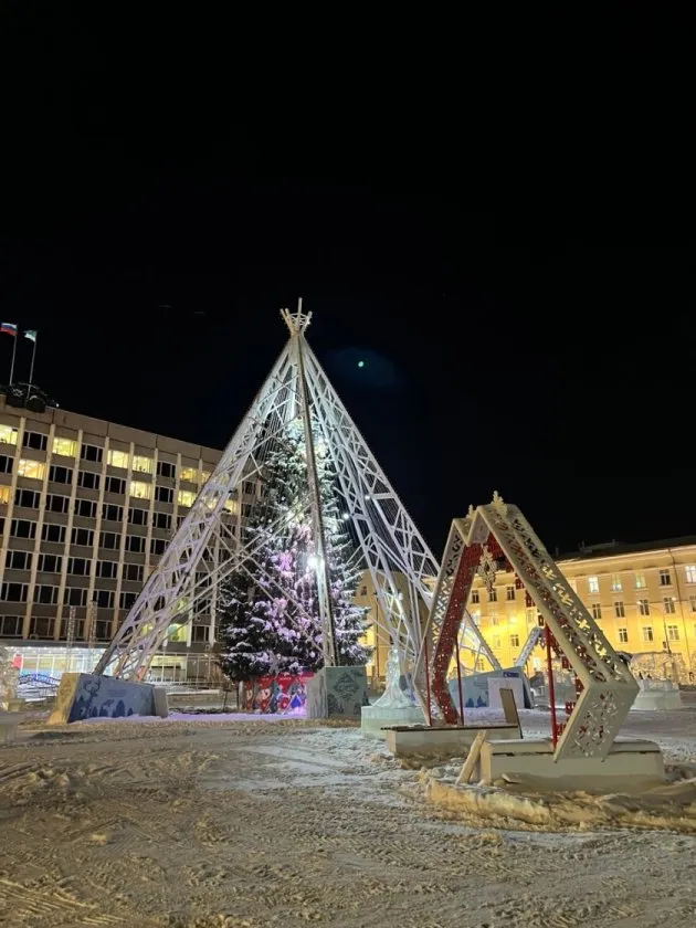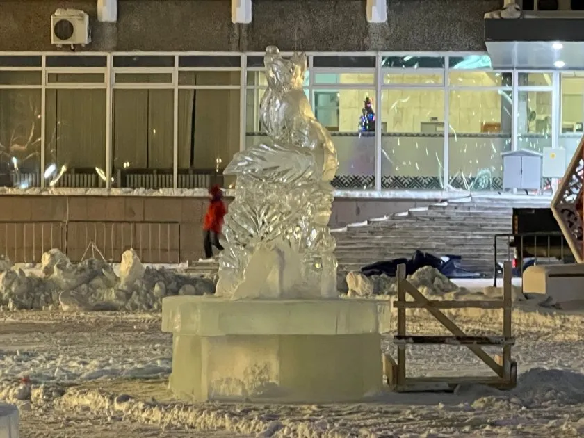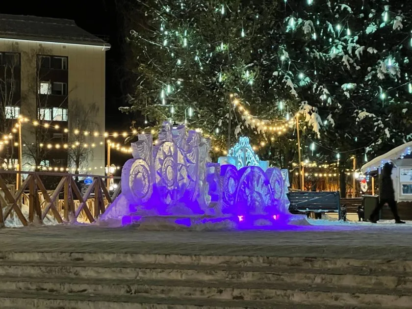 Корреспондент нашего издания узнала в контурах скульптур обитателей нашего северного леса: медведя, лису и белку. Кроме того, со стороны Главпочтамта уже красуются ледяные: елка и дед мороз с посохом, а рядом – лошадь с подковой как символ 2026 года по восточному календарю.