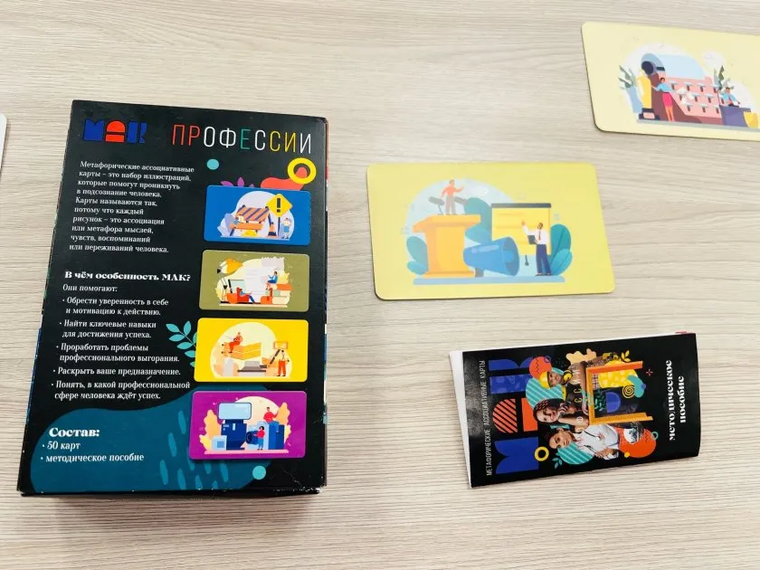 Самая же необычная и весьма в духе времени услуга - консультация с психологом. Доверительный разговор строится в рамках разных методик диагностики, цель которой: помочь человеку определиться - какое место «под солнцем» подойдет ему оптимально с учетом психотипа, способностей и склонностей, а главное - желания изменить жизнь. Так вот один из нестандартных инструментов - это МАК-карты.
