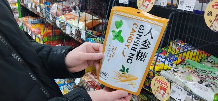 Завершает наш обзор необычная находка — леденцы с экстрактом женьшеня: