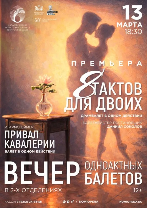 13 марта Академический театр оперы и балета Республики Коми представляет премьеру одноактного балетного спектакля "Восемь тактов для двоих"