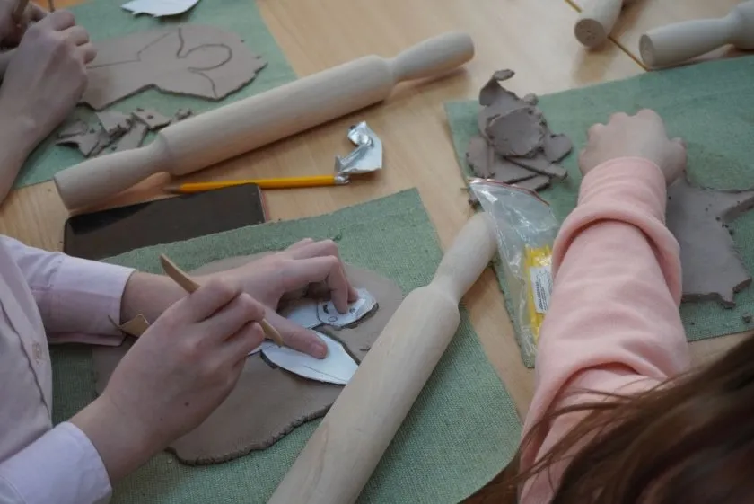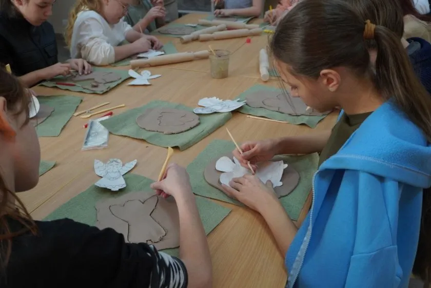 Секреты керамики в школе постигают 30 учеников ремесленного класса. На одном из недавних занятий дети научились делать ангелов: сначала с помощью специальных стиков вырезали фигурки из равномерно раскатанной глины. После нанесения рельефных линий и узоров ангелы отправятся в печь, которая закрепит материал, сделает глину твердой и подходящей для нанесения красок.