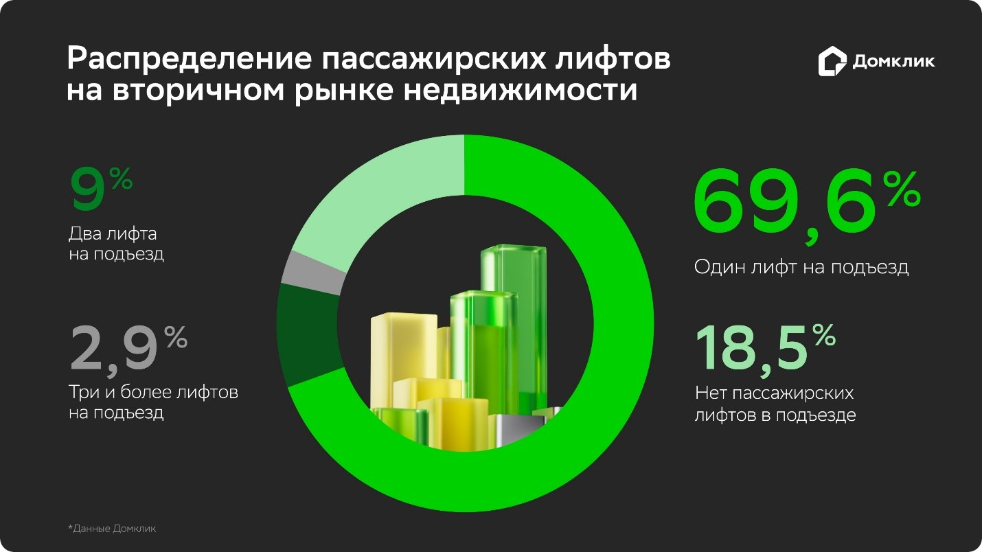 Квартиры в домах с лифтом на вторичном рынке в среднем на 47% дороже – исследование Домклик