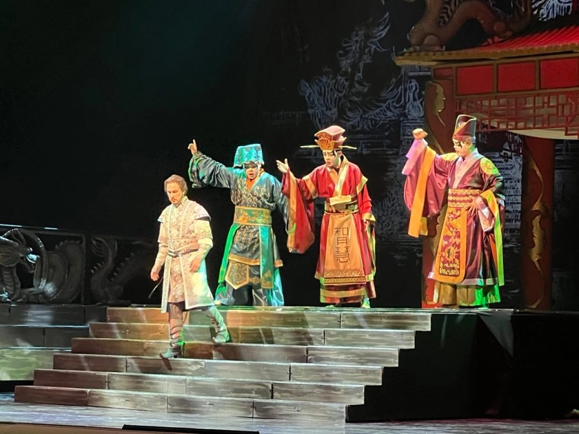 Пикантности спектаклю добавили… настоящие китайцы – артисты из КНР Цзянлун Ли, Цзыцян Лю и Цзячэн Вэй. Они исполнили партии министров. Все трое – магистранты Санкт-Петербургской консерватории.