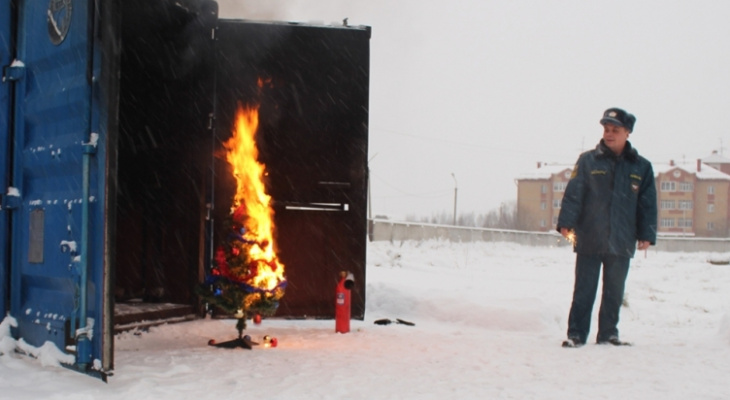 В Сыктывкаре сотрудники МЧС подожгли елку, чтобы показать, как надо ее тушить (фото)