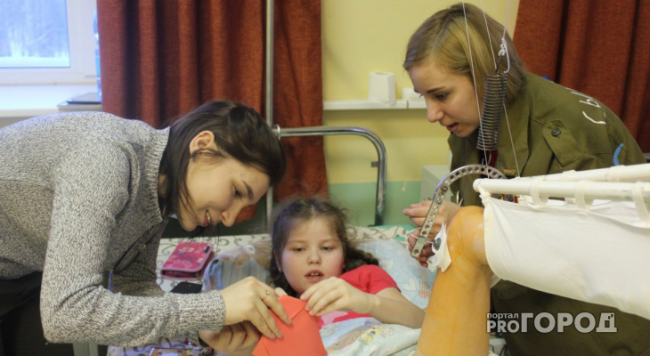 Чтобы хоть как-то их развеселить и поднять боевой дух, 21 февраля в ДРБ высадился десант сыктывкарских студентов из штаба студотрядов «СыСОла». Они зашли в каждую палату отделения, рассказали об истории возникновения праздника 23 Февраля и вместе с детьми сделали открытку-рубашку в технике оригами.