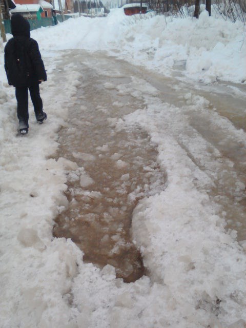 Уже много лет жители Республики Коми ругают работу коммунальных служб. Вот и теперь сыктывкарка Наталья Кузнецова опасается за здоровье своих детей и близких, ведь единственная дорога к автобусной остановке на улице Судоремонтной напоминает каток, а с потеплением оттаявший участок превращается в бассейн. Как утверждает автор, на все просьбы о помощи администрация до сих пор не отреагировала. Из-за этого местным жителям приходится самостоятельно строить мостки и другие средства преодоления этого препятствия. Сама Наталья говорит об этом: «Мы с детьми вынуждены ежедневно с угрозой для здоровья проходить этот участок дороги». Читатель новостного сообщества Олег Сорин считает: «Лучше поменять страну, сожалению».
