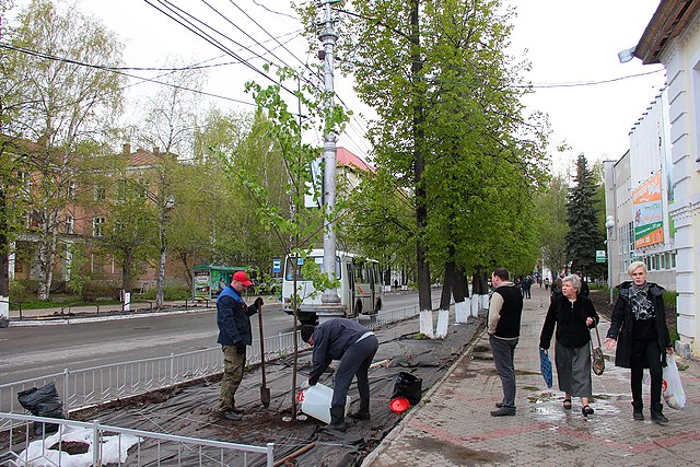 Вдоль дорог в центре Сыктывкара сажают новые деревья