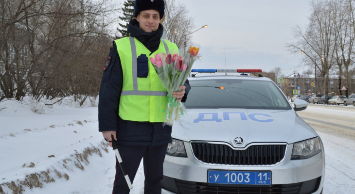 Люди в форме и тюльпаны из автомобиля: как сыктывкарок поздравили с 8 Марта