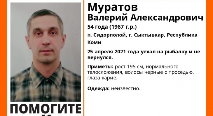 В Сыктывкаре ищут 54-летнего Валерия Александровича Муратова. 25 апреля он уехал на рыбалку и не вернулся. С тех пор его никто не видел, сообщают волонтеры «Лиза Алерт».