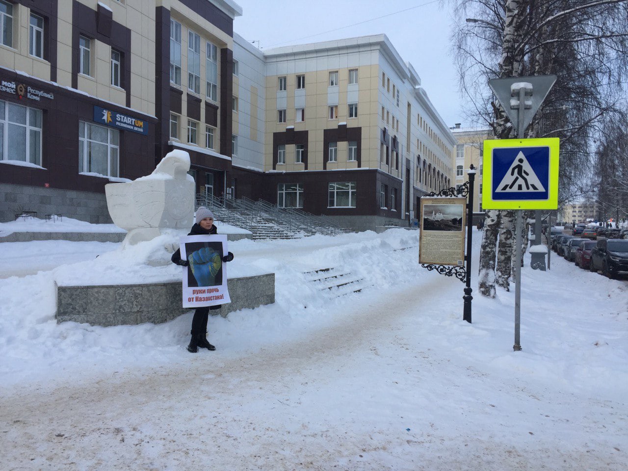 9 января сыктывкарка Елена Гулина вышла на протест против ввода российских войск в Казахстан.