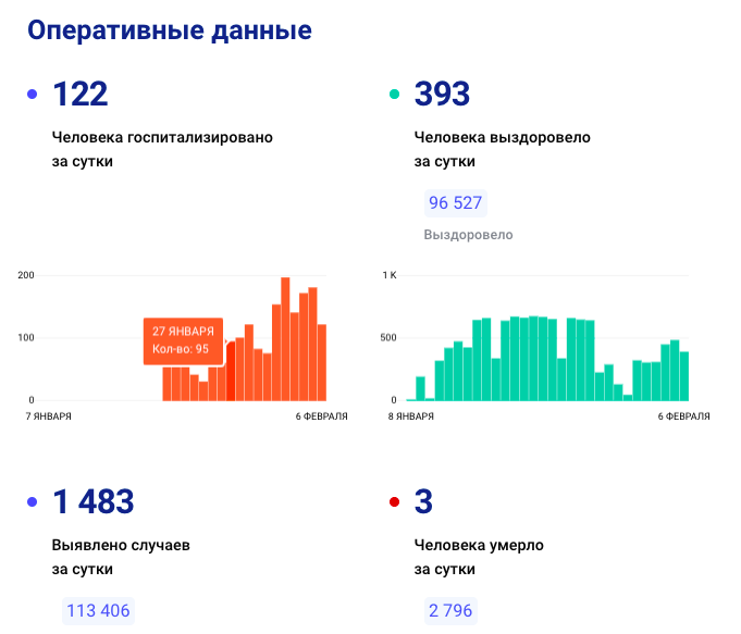 За сутки госпитализировано 122 человека. Выписали по выздоровлению393 человек. Всего с начала пандемии в регионе зарегистрировано 113 406 случаев. Скончалось еще 3 пациента - всего 2796.