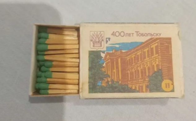 Подешевле можно купить… спички. Сыктывкарец продает не совсем полный коробок сувенирных спичек, выпущенных в честь 400-летия Тобольска. Выглядят он, к слову, не совсем обычно. Возгорающаяся головка у них зеленого цвета.