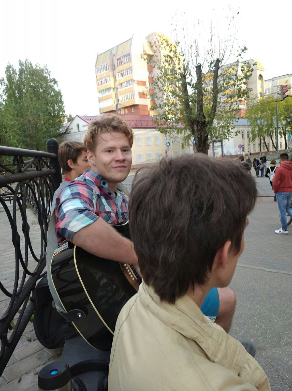 "В первый раз было волнительно играть, особенно когда люди стоят на перекрестке и слушают, а не проходят мимо. Но волнение ушло через пару песен и дальше мы с другом спокойно играли. Возможно, мне было намного легче, так как я был не один".