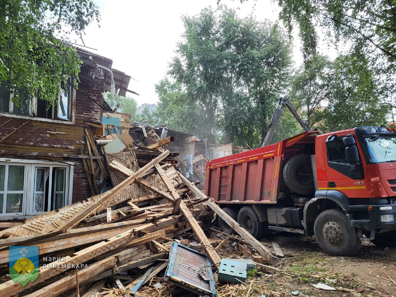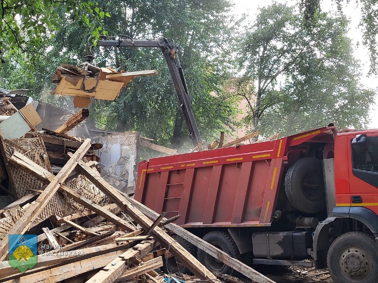 Появились фото сноса страшной "деревяшки" на улице Орджоникидзе в Сыктывкаре