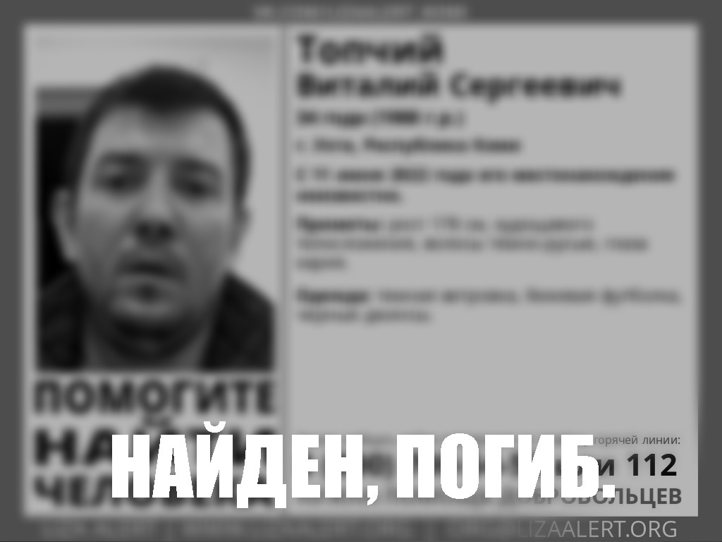 В Ухте завершились поиски молодого человека, который исчез еще 11 июня. 34-летний Виталий Топчий обнаружен погибшим. Об этом заявили волонтеры "Лиза Алерт".