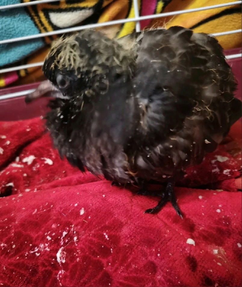 “Посадила его в клетку для кролика. Выкармливаем из шприца детской безмолочной кашей”, — сообщила женщина.
