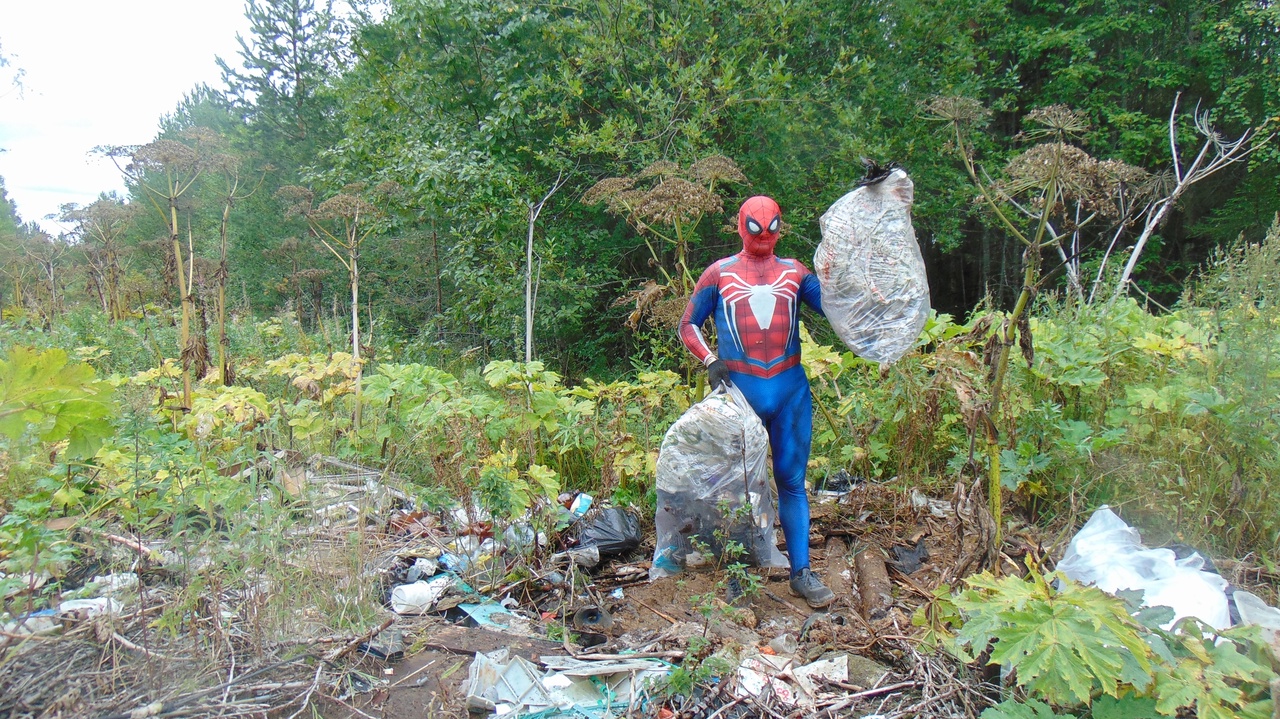 Сыктывкарец в костюме Человека-паука помогает очищать город от мусора с 2019 года. Сперва супергерой убирал свалки один, затем к нему начали присоединяться все больше и больше людей.