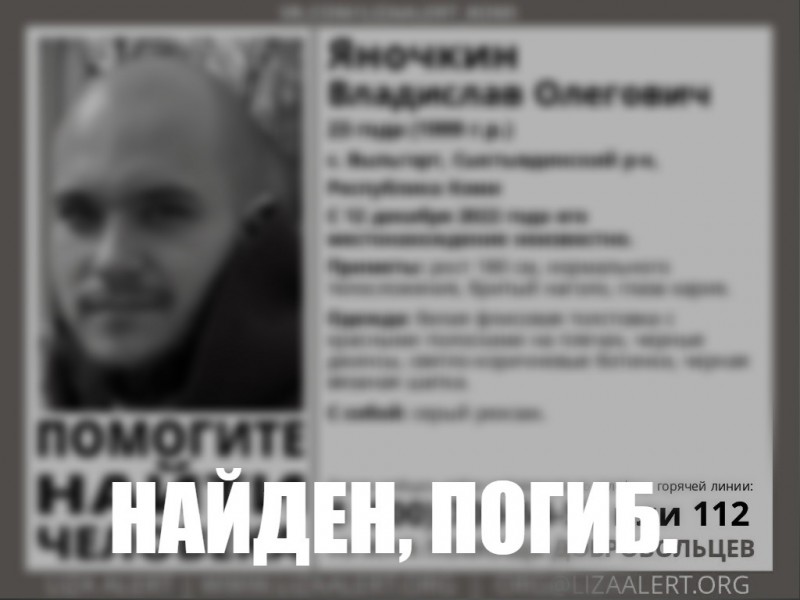 Владислав Яночкин 1999 года рождения пропал в селе Выльгорт Сыктывдинского района. Поисковый отряд просит остановить распространение информации о его поиске.