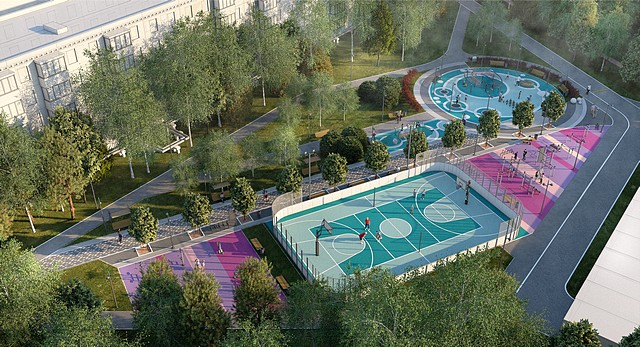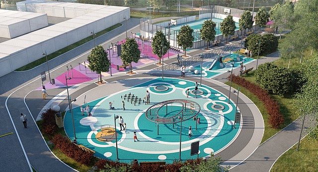 Здесь появится большая спортивная площадка с тренажерами и комплексами для физических упражнений, универсальная спортплощадка с хоккейной коробкой, детские игровые комплексы и зона отдыха с навесами.