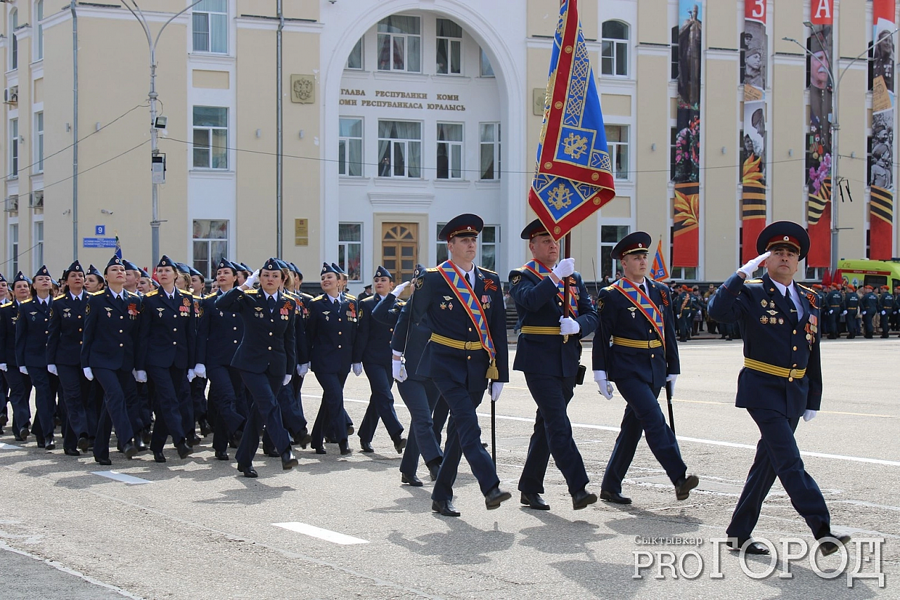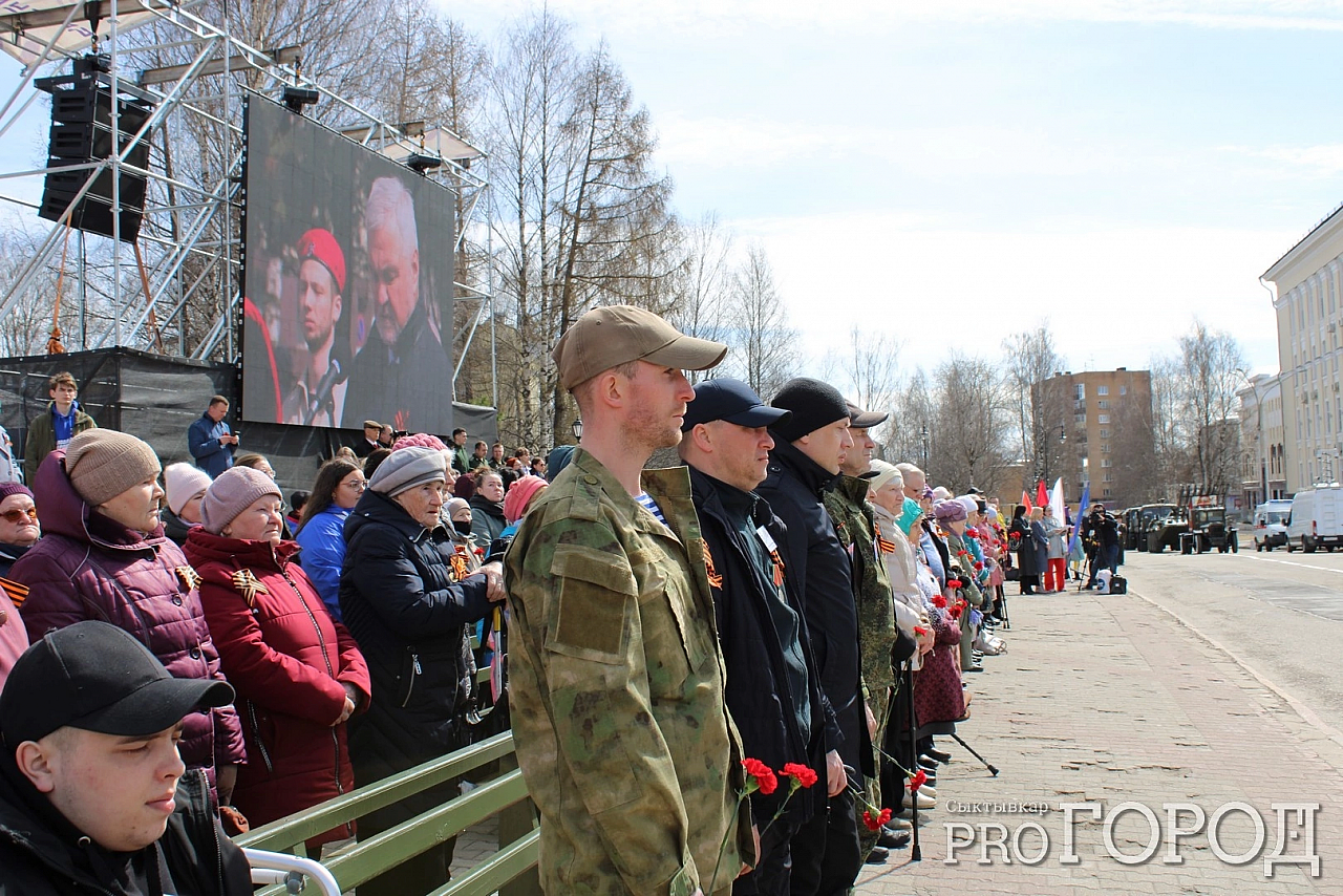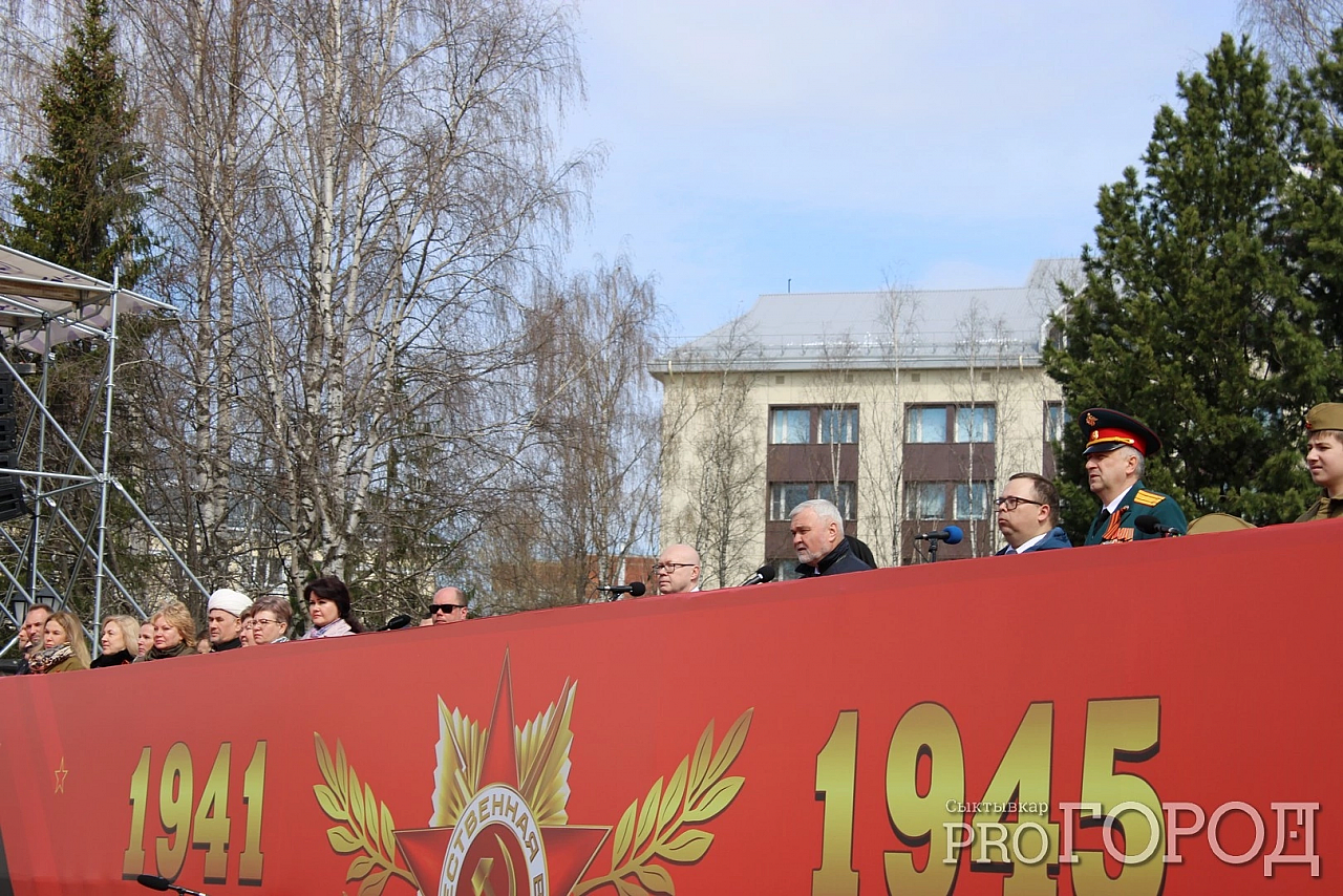 Посмотреть на парад пришли тысячи сыктывкарцев. По периметру расставили металлические заборы. С почетных мест возле памятника Ленину смотрели парад ветераны, труженики тыла, первые лица Коми, общественные деятели, а также волонтеры, которые их сопровождали.