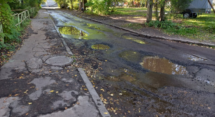 - Двор на Оплеснина, 60, который по праву претендует на самый худший. Тротуары и проезжая часть в ужасном состоянии: ямы, огромные лужи после дождя, ходить совсем небезопасно (особенно в темное время суток). Ремонта не было, наверное, со времён постройки.