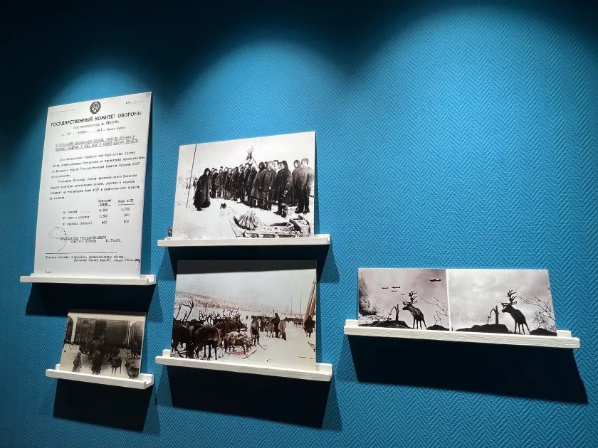 «На выставке мы представили уникальные архивные черно-белые снимки, отражающие работу оленей и каюров в годы войны. На плакатах отражены основные вехи этого особого подразделения в военное лихолетье, показаны биографии нескольких оленеводов из Коми, доблестно служивших на передовой, - прокомментировал стенды собеседник издания. - А также можно подойти и погладить оленя и посмотреть, что из себя представляет макет чума. Мы его соорудили в масштабе, в четыре раза меньше настоящего жилища каюров».