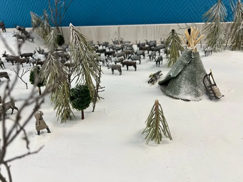 Кроме того, сотрудники учреждения своими руками обустроили диораму, расставив около полутысячи фигурок оленей и бойцов на земле, усыпанной искусственным снегом с расставленными деревьями из хвойных веточек, изображающих северные леса.