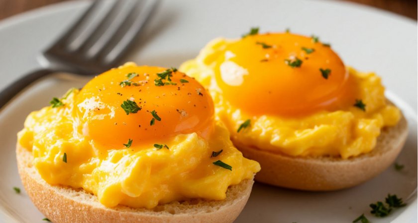 Этот метод позволяет приготовить яичницу без единой капли масла, делая её более здоровой и легкой. Вкус получается богатым и аппетитным: воздушный белок, тающий желток и аромат мяса.